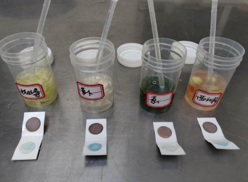 ,檢測(cè)試紙均呈現(xiàn)為藍(lán)色,結(jié)果為陰性,意味著本次抽取的蔬果都未測(cè)出農(nóng)藥殘留。