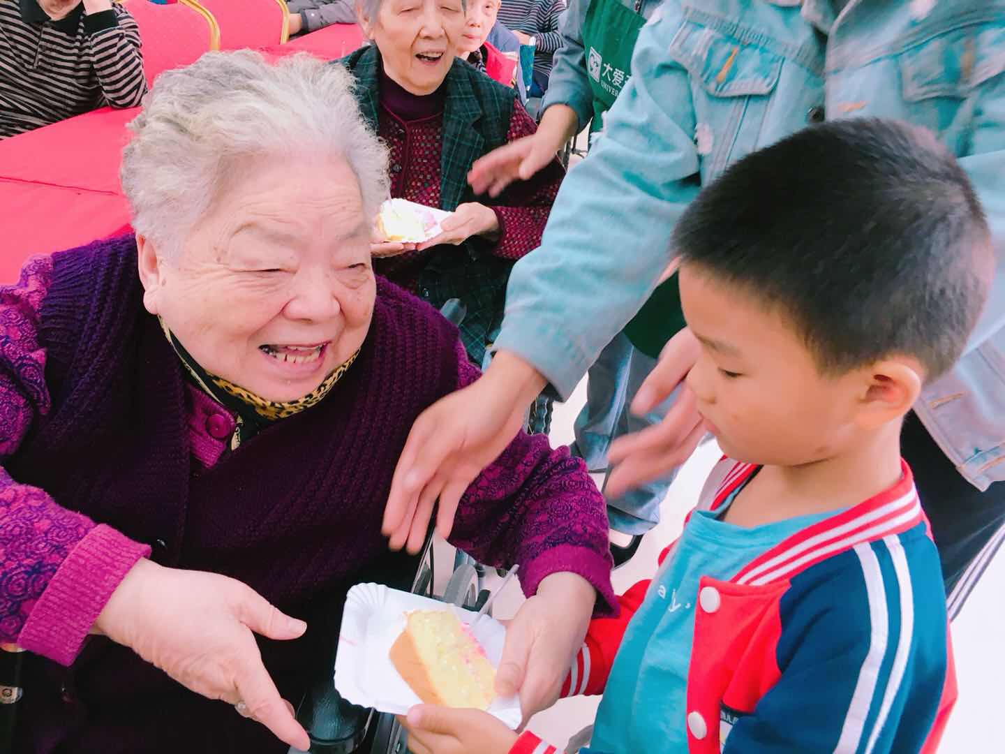 為發(fā)揚(yáng)愛老精神,傳承中華美德,10月16日上午,實(shí)幼三園的大班師生來到金華綠城頤養(yǎng)中心和爺爺奶奶們共同慶祝九九重陽節(jié)。雖天氣陰雨綿綿,爺爺奶奶們卻早早就在大廳內(nèi)等候;顒(dòng)伊始,小朋友們就整整齊齊地向爺爺奶奶們問好,奶奶們則自告奮勇上臺(tái)唱起了歌,講起了故事,其樂融融。小朋友們也為爺爺奶奶們獻(xiàn)上了精彩的表演。表演結(jié)束后,小朋友們?yōu)槔先藗儷I(xiàn)上了美味的節(jié)日蛋糕,唱起節(jié)日快樂歌,還精心準(zhǔn)備了小零食,由他們親手送到爺爺奶奶手上。爺爺奶奶也將親手制作的漂亮愛心鏈子回贈(zèng)給小朋友。