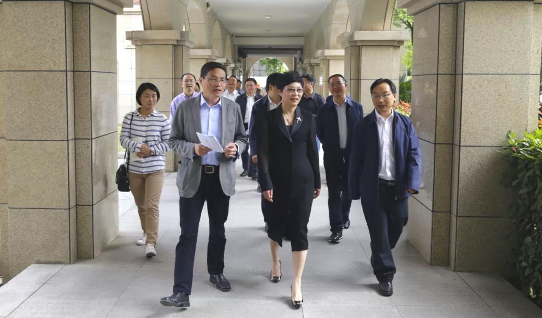 5月8日下午,在2019年全市教育大會(huì)召開之際,金華市委副書記、政法委書記、市教育工作領(lǐng)導(dǎo)小組組長(zhǎng)陳玲玲,市委常委李恩華,市委副秘書長(zhǎng)黃勝可,金東區(qū)區(qū)委副書記、區(qū)長(zhǎng)陳峰齊及市委編辦、教育局、財(cái)政局、人力社保局、公安局等部門領(lǐng)導(dǎo)在金外理事長(zhǎng)朱耀仁和總校校長(zhǎng)方家鴻的陪同下,實(shí)地察看了學(xué)校校園環(huán)境,參觀了校園文化長(zhǎng)廊,并聽取了學(xué)校辦學(xué)情況、黨建工作情況、六張?zhí)厣k學(xué)“金名片”以及未來發(fā)展規(guī)劃的工作匯報(bào)。調(diào)研過程中,文化長(zhǎng)廊展現(xiàn)的豐富社團(tuán)活動(dòng)和選修課吸引了陳玲玲副書記的目光,她表示:“學(xué)生要全面發(fā)展,一定要重視素質(zhì)教育,金外做得真不錯(cuò)!”