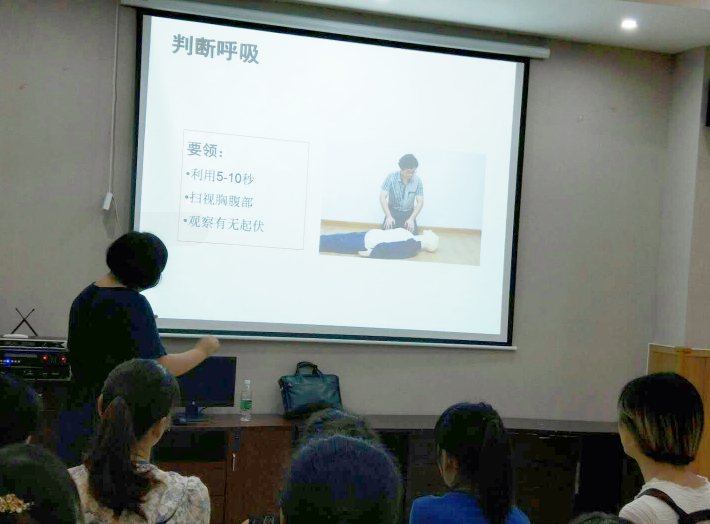 為了讓老師了解自救、互救知識,學(xué)習(xí)掌握急救技能,增強(qiáng)安全意識,使幼兒在遇到突發(fā)情況時(shí)能迅速得到最正確、最有效的急救措施,6月11日中午,實(shí)幼二園組織全園教職員工在多功能廳開展了緊急救護(hù)專題知識培訓(xùn)。